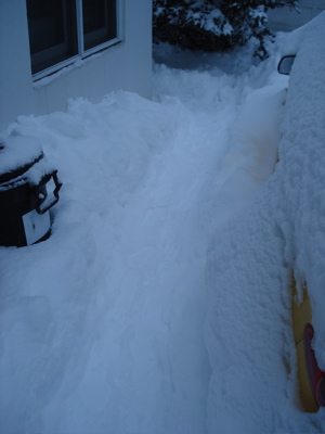 The door to my apartment is on the back of the house. I’d say my part of town got about 15 new inches of snow on Thursday and Friday, and then some high winds helped to create some substantial driveway drifts! I shoveled a winding path from the street, zigzagging around the cars in the driveway, and around the back of the house to my door. Every time Boh and I walk down it, I feel like I’ve created some kind of Olympic ice luge or bobsled track. I also had to dig out my car, which I did in two 1-hour chunks.