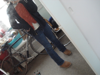 One last picture — I think I am subconsciously responding to all of the bright whiteness outside! A glance in the mirror had me laughing at my apparent attempt to wear all of the colors of the rainbow at once. Silly rooster!