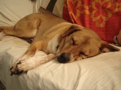 T.’s sweet dog, Coltrane, came over to play with Boh, and once we convinced him to get up on the couch, he decided to spend much of the evening lounging.
