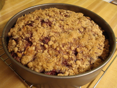 My friend T. did quite a bit of shoveling yesterday too, and she came over last night to commiserate with a bit of wine and some sour cherries, which we promptly turned into coffee cake!