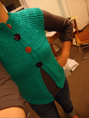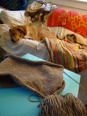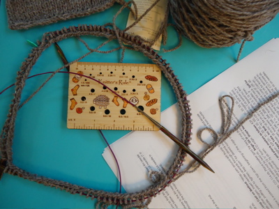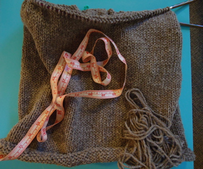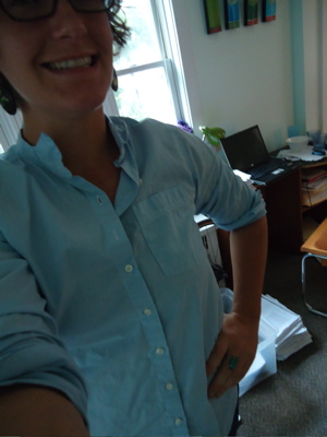 Last picture today: year three, day one. Me and my goofy grin are off to campus soon. A big year begins. But first, I’m going to knit another inch of that big, happy cowl-neck.