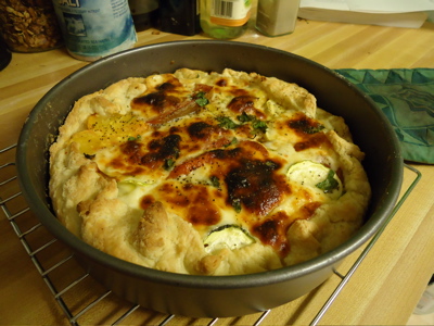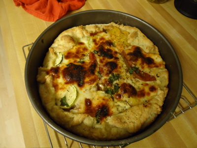 This is a tomato, basil, and mozzarella pizza — no sauce, just some olive oil brushed on underneath the toppings. This is might be my new favorite pizza combination — the tomatoes were so sweet — almost caramelized by the heat of the oven.