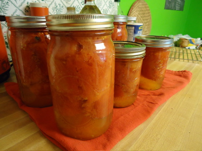 Time to can some tomatoes! I’ve never done this before, and I’m psyched. My mom emailed me her recipe for sauce and scanned in her handwritten notes about canning whole tomatoes. I remember her doing this when I was little, and I am looking forward to having my own jars of tomatoes I picked on my shelves!