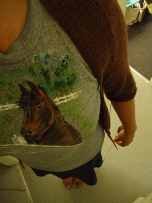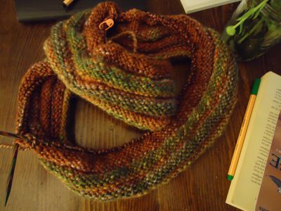 This project is inspired by CatReading’s wurm cowl. (If you have time, look through her other projects — her knitting is lovely.) I wound up my Rhinebeck cauldron handspun on Thursday morning, and took it with me for the weekend. I cast on roughly 180ish stitches and got to work. A few mornings at my parents’ kitchen table with a mug of coffee, and an afternoon pedicure with my mom created ideal conditions for serious progress — I’m well into my second skein. The squishy-ness of this yarn makes it absolutely addicting to knit. I’m optimistic about the outcome, but there’s a chance this will be too wild for me. I guess I’ll just have to keep knitting to find out…