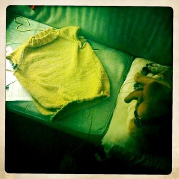 (Apologies for the bad pun. I can’t help myself.) You’re looking at today’s plan: if we do nothing, nothing bad can happen. I realize there are several flaws in my logic, but you know what? Today, it worked. After taking a friend to the airport early this morning, I climbed back into bed with Boh and slept in. Then I curled up on the couch with Agnes, a movie, and some podcasts, and knit, knit, knit. I’m loving my Agnes pullover, and I’ve only got a few inches of ribbing to go on the body.