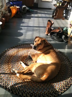 And here are a couple of porch pictures: me reading, Boh lounging. (As it should be?) I’m thinking we’ll do a bit of this today, weather permitting!