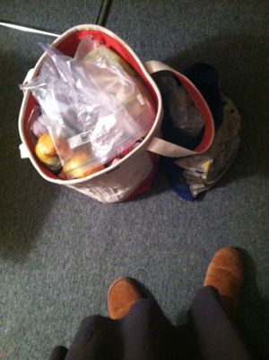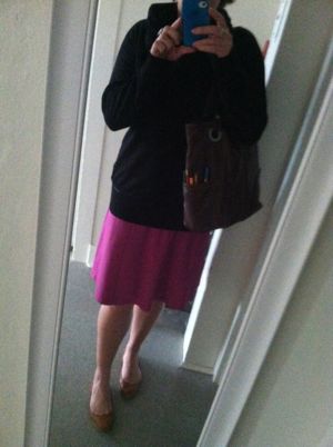 Once I started, I couldn’t stop. I ended up pulling out every WIP I could think of. (Only the stuff in the tote bag is pictured above.) I put away needles, filed patterns (like I’ve looked in my knitting binder since Ravelry really took off…), and even decided to frog things I haven’t touched in years. The Thermal sweater I started in BLACK fingering weight yarn 5 years ago? Frogged. The Milkweed shawl I knit 5 rows of and put away because of something with a deadline? Frogged. The adorable Manresa legwarmers I started knitting — right after I started knitting? Bound off, right where I was. I’m totally keeping the beautifulness of my stranded knitting, despite the fact that the floats on the wrong side are atrocious, and so tight that the legwarmer probably wouldn’t even fit Boh in places!