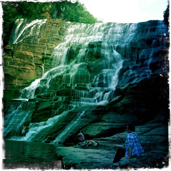 And then we went to the farmers’ market and on a short walk to these waterfalls (seen here in D.’s hipster-view).