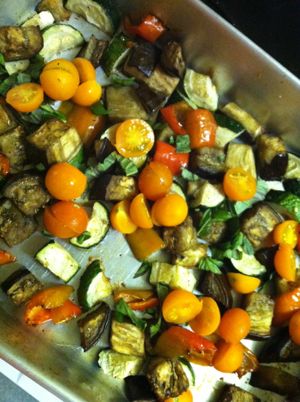 I also ate these roasted vegetables. The eggplant was particularly delicious, and a nice way to conclude a fantastic weekend. I also started another pinwheel blanket (also a wedding present). Pictures of that soon!