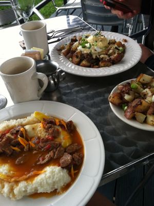 On Sunday morning, we drove to a neighboring lake to go out for a fabulous brunch on the deck. Cheesy grits in homemade sausage gravy, corn beef hash with poached eggs in a dijon hollandaise, rosemary potatoes…so good. Then we visited a distillery and tasted brandies, bourbons, gin, and rye. I was too busy enjoying myself to remember to take any pictures there.