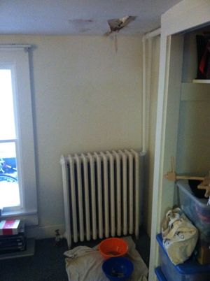 This isn’t Sandy’s fault. A leak developed last week, and the management company patched it on Friday because Sandy was approaching, but this was only supposed to be a temporary fix. It held through most of the night, and began leaking early this morning. Nothing to complain about here, especially when I look at images of NYC and the coast. The Sandy trajectory had the eye of the storm heading north right through here, but everything seems to be slowing down and heading further west. I’m thankful for that, and thinking of all my friends in NYC, DC, CT, and everywhere in between. And while I rarely discuss politics (in this space, anyway), election day is a week away, and I think it is important to consider the different ways that Romney and Obama approach the role of government in situations like Sandy. The New York Times, in a morning editorial on partisan ideas about federal emergency response titled, “A Big Storm Requires Big Government,” had this to say about it: “The agency [FEMA] was put back in working order by President Obama, but ideology still blinds Republicans to its value. Many don’t like the idea of free aid for poor people, or they think people should pay for their bad decisions, which this week includes living on the East Coast.” I am all for responsibility; it’s just that the way I see it, responsibility means accountability and action on the part of the United States to acknowledge the ways in which our actions are influencing the complex systems that govern global climate. It means broadening our sense of caring and community to include those who are most vulnerable — and not only when disaster strikes. Significant resources at the federal level are necessary to deal with significant problems. (You can donate to the American Red Cross here.)