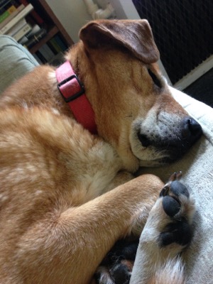 Boh, napping under my desk during a conference call.
