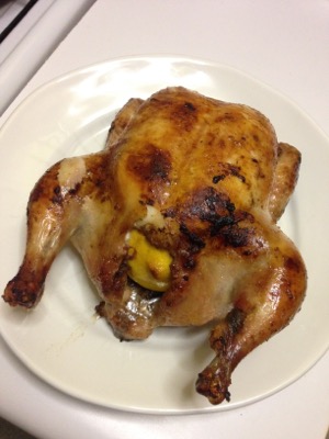 I roasted a chicken! I know this is pretty basic, but somehow I managed to make it to 33 without ever doing this. Whenever I buy whole chickens (which, admittedly, isn’t that often), I tend to turn them into soup. I followed a recipe from The Ktchn’s cookbook, and stuffed the bird with two halves of a whole lemon. (This is not the recipe I followed — though I’m flagging this one for future reference because the temperature is lower, and that might work better with my current kitchen.)