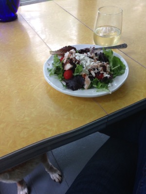 Someone stood watch for any food that might fall from my fork. (It didn’t happen.)