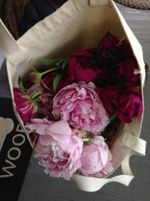 The long winter means that the start date for my CSA has been pushed back, but the farmer emailed last week to say that we should all come out and pick some peonies anyway. When I got there, she said to have at them, and pick as many as I could carry. So I did!