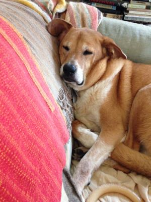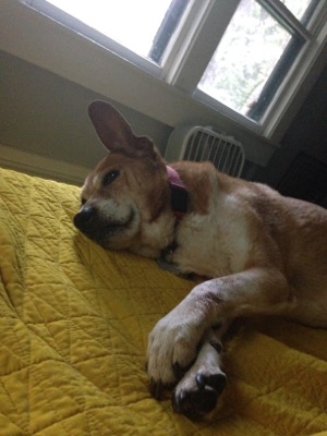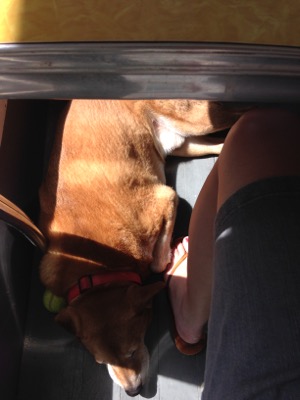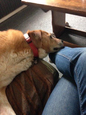 Silly, sweet, completely tuckered-out dog. I snap these morning pictures of him on days when he isn’t waiting at the front door to go outside after I put the water for coffee on. Sometimes the weather is lousy, sometimes he’s still sleepy from a big day of adventuring, and sometimes, as in this next picture, he’s waiting in order to ask for a belly rub before we start the day.