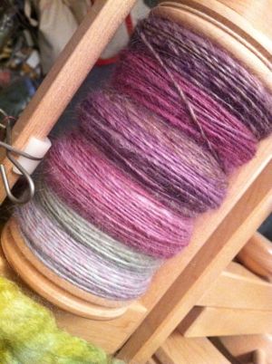 I have more spinning to share — my wheel was looking so empty that I just had to start a project. Or two.