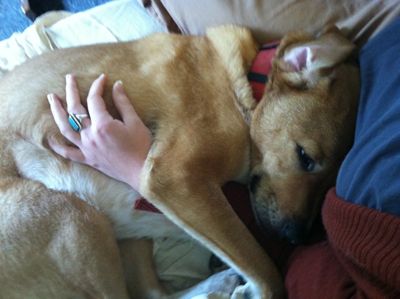 And this. I only intended to start this last night, but I ended up spinning a whole bobbin’s worth. This is AVFKW Wensleydale in Intergalactic Space Travel, dyed with indigo, which, as expected, turned my fingers a gorgeous shade of blue. I’m still learning about how dye and fiber react, and with this stuff, I could really see how the saturated spots were different (and more difficult for me to spin) than the lighter sections. I’m aiming for a worsted-ish 2-ply with this, but it might turn out more thick and thin, as the coarser, more saturated parts were making it really tough for me to get into a rhythm and find some level of consistency. I’m really interested to see how this yarn feels once it has had a good soak, as the indigo really changes the feel of the wensleydale.
