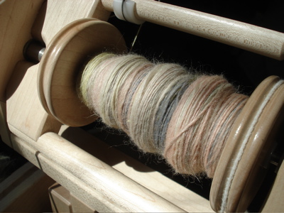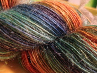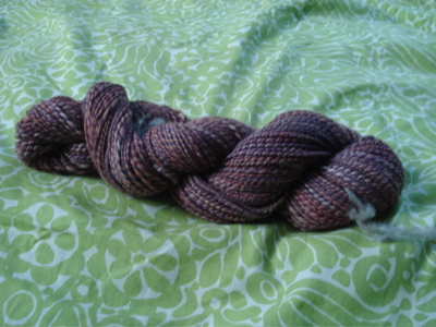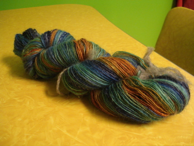 121 yards (from 3 oz) of navajo-plyed worsted weight superwash bfl in the magic chip colorway from the AVFKW Woolly Wonders Fiber Club. So, navajo plying a whole skein’s worth of yarn isn’t as scary as I thought it would be! Despite the occasional wrestling I did with this bfl and my not-always-consistent singles, I’m really happy with how this yarn turned out. Now, what should I do with it? (Do we think 120 yards is enough for toddler legwarmers? I know a 4-yr old who would love some.)