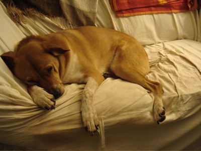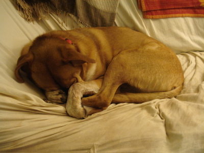I did manage to get through a fair amount of grading today, and Boh and I romped through muddy fields and meadows with our friends D. and Coltrane (the greyhound) this afternoon. There’s an apple crisp in the oven, and a pile of knitting awaiting me on the couch (next to a loudly snoring dog). These are the makings of a good, quiet evening.