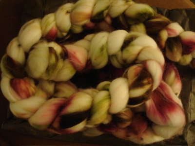 Yesterday I finished plying the Spunky Club corriedale in New Day. This stuff is hanging to dry, and should be all done by the time I get back from morning yoga today.