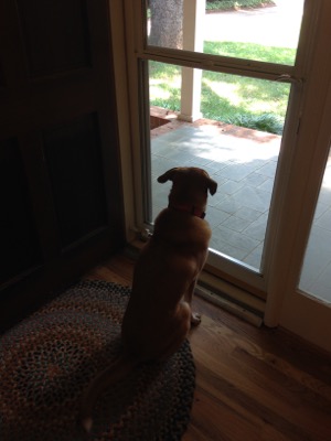 I put down Boh’s favorite rug (which was on the lake house porch), and he immediately claimed a spot at the door.