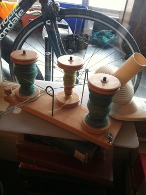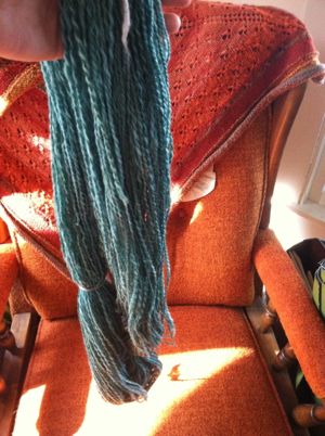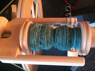 See? What a good boy. I finished spinning the second bump of the Pigeonroof Studios fiber in bronzed teal, and I’m psyched to ply it. Stay tuned for yarn pictures!