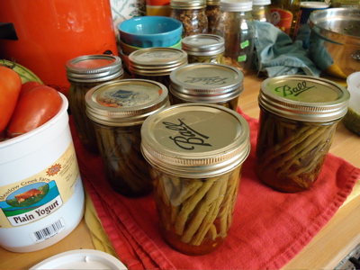 The canning pot is on the stove, and the jars are on their way to being sterilized for a batch of dilly beans. I’m intending to pick as much as I can this afternoon and then try to freeze or can in all of my spare time this week. Temps have been in the high 40s at night here in town, and up at the farm, the first frost is imminent (after which, much of the field produce that is available for preserving/freezing will be done for the season). I’m just going to keep doing that can can until then — it is (and will be) super rewarding, but man, preserving is exhausting! I may have gotten into bed at 9:30 last night.