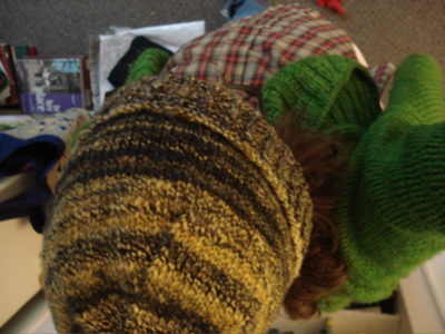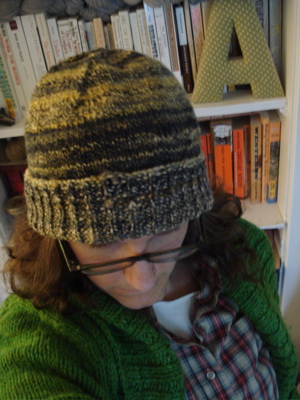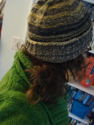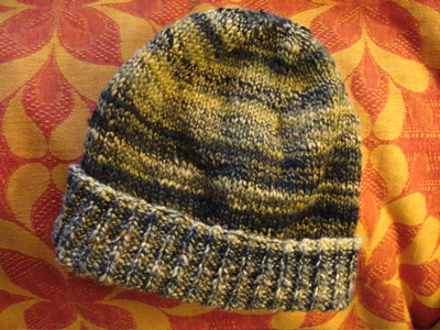 This is the largest size of the seaman’s cap, knitted even longer than the pattern called for, and made out of my handspun — Southern Cross Fibres polwarth, spun as a worsted weight 3-ply. (I still have about 80 yards left, so I may try to incorporate stripes into mittens or a manly cowl or something. We’ll see.)
