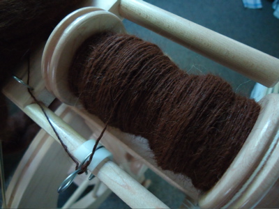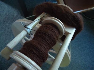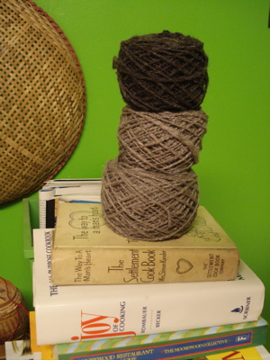 Anyway, in keeping with my plan to knit everyone (well, everyone who likes wool — see Multnomah shawl above) something out of handspun, I’m making my brother some mittens out of oatmeal bfl (the lighter stuff) and dark grey local jacob. I’m going to use the Alex’s Mittens pattern by Rebekkah Kerner (whose handspun is awesome, by the way). The pattern has a nice, full hand, which I really like.