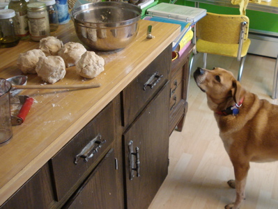 And that was today. Windows open, music loud, pie in the oven. Boh spent the morning in a pocket of sunshine on the comforter, and I played in the kitchen and sat at my wheel. We are on spring break. (Which mostly means longer chunks of time to grade exams, read, write a conference paper — but also means we can justify things like longer, more leisurely walks, elaborate kitchen experiments, and having another beer — which is code for not working late into the evening.)