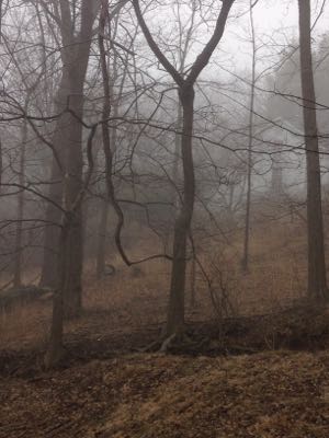 And the weather turned into pretty good hunkering weather. The fog sat low over the lake, which made the yard look eerie.