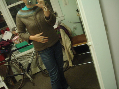 I knit the yoke and sleeves on size 6 needles and knit the body on 7s, and I shortened the sleeves to 3/4 length.