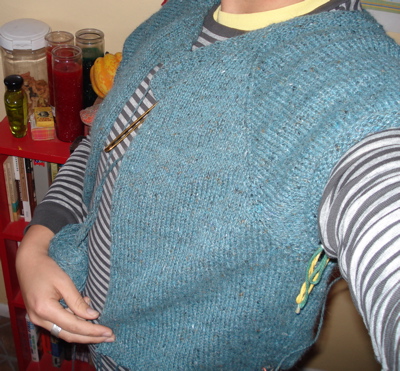 Well, all but the button bands. I might hold off on those until I absolutely need that yarn, because basketweave in a sticky yarn like Rowan Felted Tweed is a pain to undo.