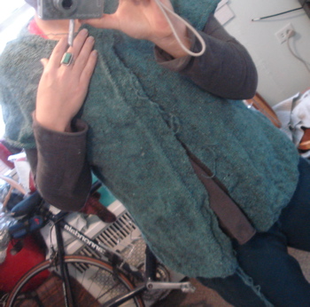 When I got home from yoga this morning, I ripped out the progress I’d made on one sleeve, and tried it on again. Definitely too big. So this afternoon, I sat down and slowly picked out the seams connecting the basketweave button band to the body of the sweater, and frogged the whole thing.