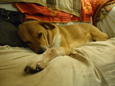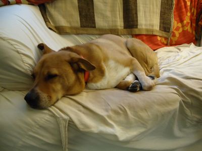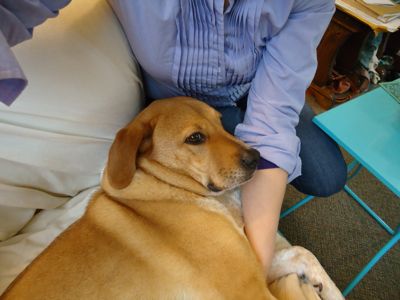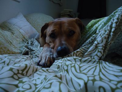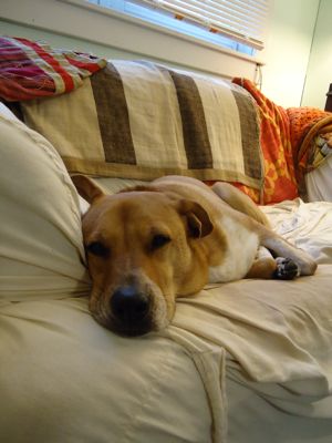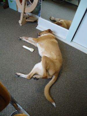 This guy got his own “male” day of sorts yesterday. Instead of working last night, I cleaned out a kitchen cupboard, and found a bone I’d been saving (and then totally forgot about) for Boh. He watched it intently (pictured here), tossed it around a bit, and then ran away from it/came back to it several times before settling down to eat it. Male day, indeed.
