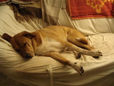 Silly, sweet, completely tuckered-out dog. I snap these morning pictures of him on days when he isn’t waiting at the front door to go outside after I put the water for coffee on. Sometimes the weather is lousy, sometimes he’s still sleepy from a big day of adventuring, and sometimes, as in this next picture, he’s waiting in order to ask for a belly rub before we start the day.