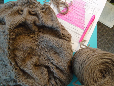 I am thrilled with how this turned out. Plus, I learned new things about lace knitting, casting on, and binding off, and I reclaimed some lace knitting confidence after my ishbel fail. Victory! I used just under 1.5 skeins of Cascade Ecowool (using US 10.5 needles as called for in the pattern) and I made the regular size, binding off at the marked row on the chart. And with the kitchen table back, I made pizza for dinner last night.