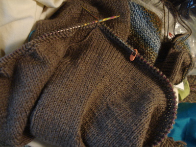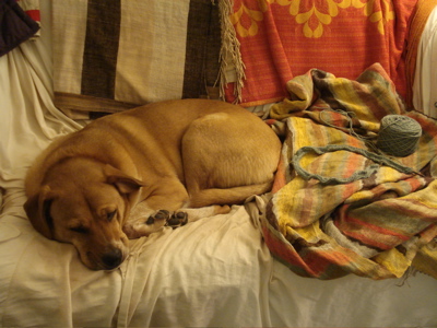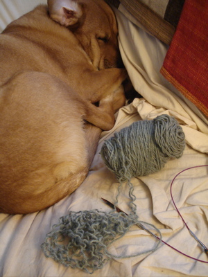 And then, I thought, socks can be tough to knit on while watching The Wire — I need something squooshier and fatter to work on in the evenings, something that is so simple and soothing that I can keep knitting while crazy things happen in Southeast Baltimore.