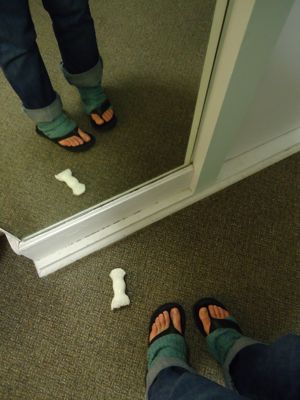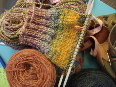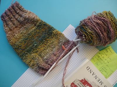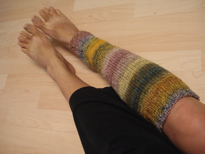 LOVE. These were so comforting to knit, and they were just the thing I wanted to pull on when I climbed out of bed today and looked outside at this morning’s overcast sky. I followed Adrian’s legwarmer recipe, and using size 7 dpns and my handspun patchwork 2-ply merino, here’s what I did: