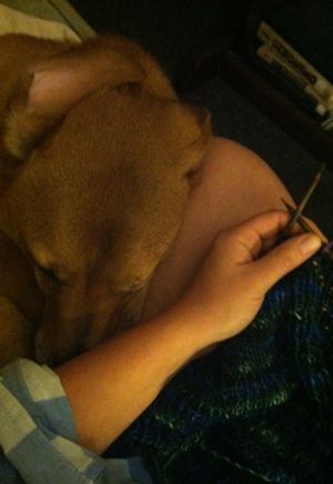 And this? This is the cowl that will not end. (Also, the sweetest dog.) I really want to knit until I run out of yarn, but I am also ready to be done with this project. I’ll probably split the difference and spend a few more evenings on it and then just bind off.
