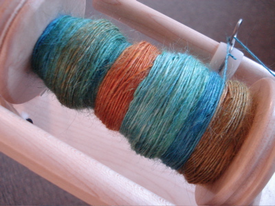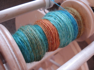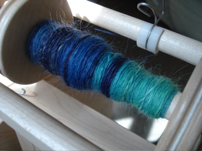 Swoon. 506 yards of laceweight/light fingering in a stunning mohair/nylon/merino blend from the Hello Yarn Fiber Club, colorway Loch. I took A LOT of photos of this stuff, which are all on flickr, if you want more. See, I was feeling so pumped about how these singles turned out that I just had to get something else on my wheel.
