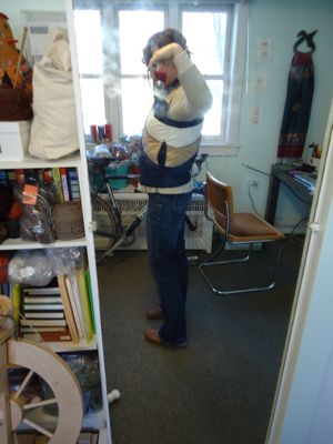I was skeptical when I started knitting the new new shale cowl. I just wasn’t sure that the dark variegated silk was the right match for this pattern, but I’m glad I stuck with it, because I think this is beautiful, and a great fit for my mom. I hope she likes it. (Remember, this is a Christmas present. She picked the yarn, which I wrapped up for her, and then she chose the pattern.) I’ve decided not to block it, so that my mom can decide if she wants to stretch/open up the lace a bit more — if I were keeping it, I think I’d leave it as is.