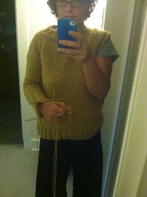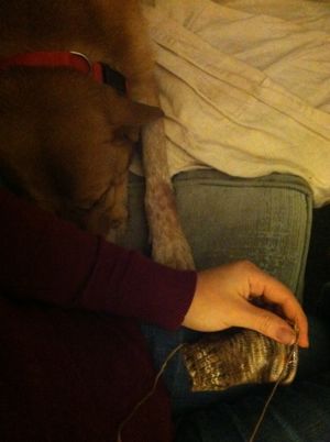Some sock knitting, almost to the heel flap. (And a sleeping pup.)