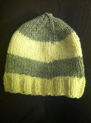 Striped baby hat number 2. This one went to my cousin’s daughter, on the occasion of her baptism this weekend. I hope it fits!