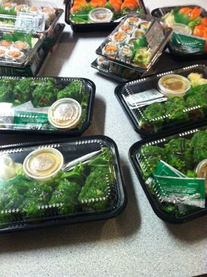 Sushi. A lot of it. A group of my favorite grad-school friends have been getting together to watch The Bachelor and offer some analysis — which is fascinating and a lot of fun because it is so different from what we work on. And since weekends are filled with work, it feels super indulgent to set aside some time on Monday night for something like this. The sushi was to celebrate the finale. (And we were definitely ready for it to be over!)