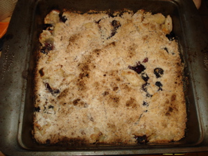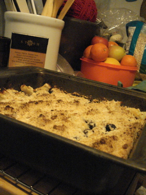 Recipe from Apples for Jam. (Self, you are so clever.) I know that I am super late to this party, but while I was in NYC, I found this cookbook by Tessa Kiros at Anthropologie for under ten dollars. No brainer. This weekend I made both the Pear and Berry Crisp (with pears, apples, and some frozen blueberries), and the Lentil Soup (with more liberal modifications based on the contents of my fridge and pantry). Balsamic vinegar with lentils is a brilliant idea, by the way, and here’s a shot of the crisp: