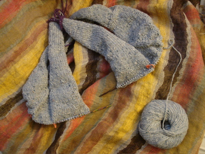 Yesterday I was looking for an extra layer, and dug out my sassymetrical, which provided just the right amount of warmth under my slouchy navy (store-bought) wear-all-the-time cardigan. And that’s today’s handknit-in-action.