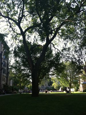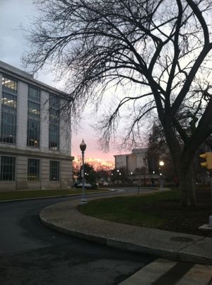 Sunset, with the Washington Monument barely visible behind this tree. Snapped moments after leaving work for the day.