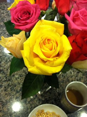 Birthday flowers from K., who is dear to me and far away. I’ve been enjoying them every morning alongside my coffee and cereal.
